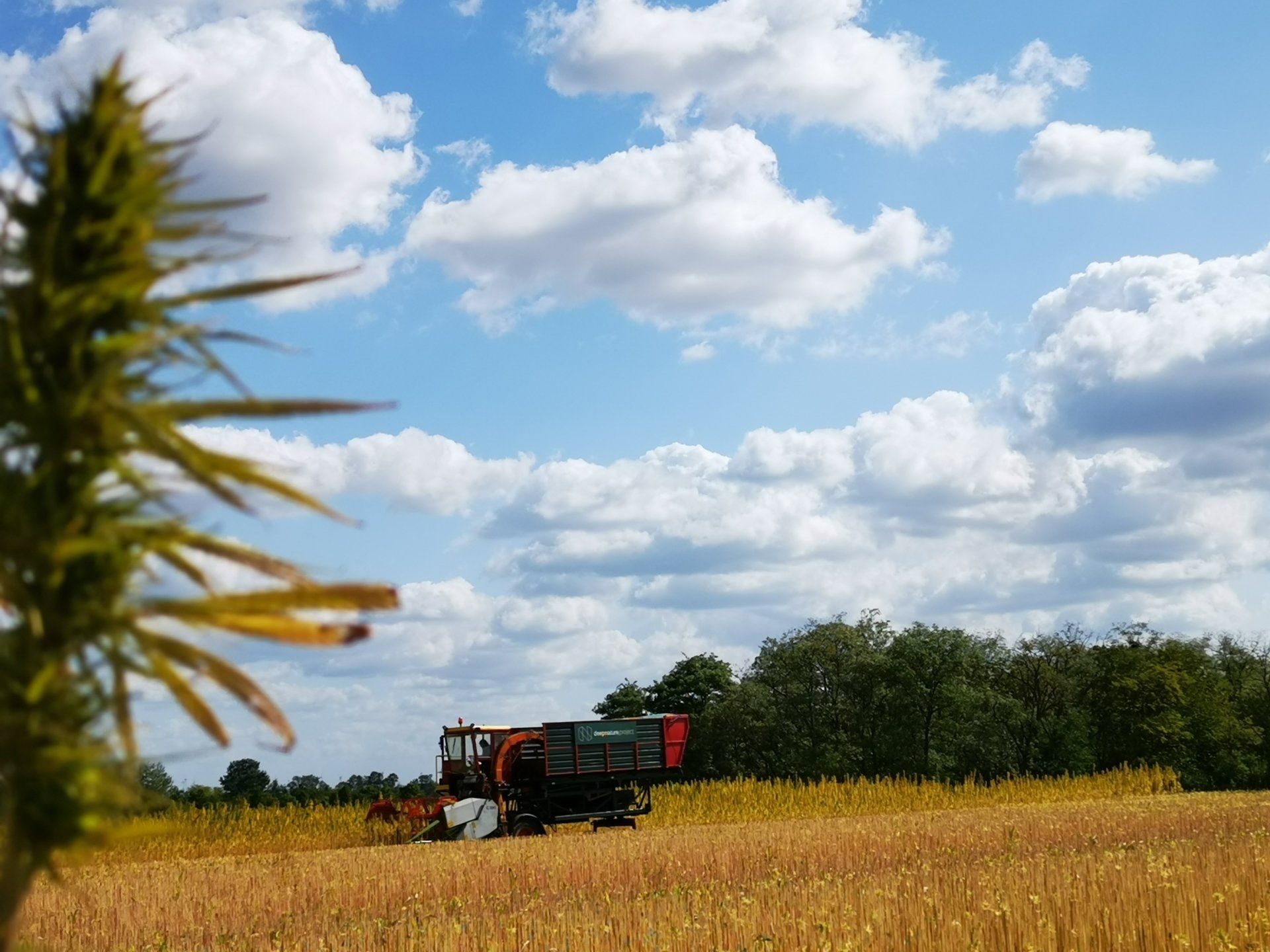 Neben der Ernte machen wir uns intensive Gedanken, was wir mit den Stängeln machen, die nach der Ernte auf den Feldern stehen bleiben. Bisher haben wir sie geschnitten, in Schwaden gelegt und nach wochenlanger Feldröste zu Ballen gepressst. Diese werden dann zu Dämmstoffen weiterverarbeitet.